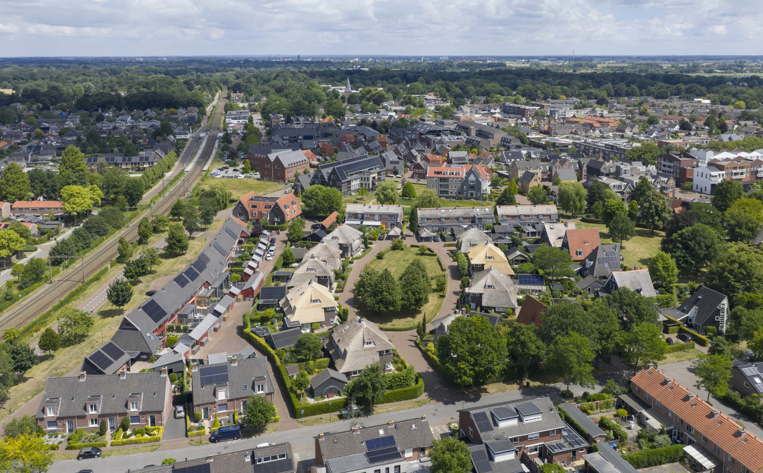 Waar ooit de vleesindustrie van DUMECO het dorpshart van Twello domineerde, is nu een karaktervolle woonwijk gerealiseerd. abc vastgoed won de gemeentelijke prijsvraag voor deze herontwikkeling met een plan dat radicaal brak met eenvormige nieuwbouw en rechtlijnige stedenbouw. Geen standaardwijk, maar een buurt waar architectuur, landschap en openbare ruimte één geheel vormen. Geïnspireerd door de historische architectuur van Twello.